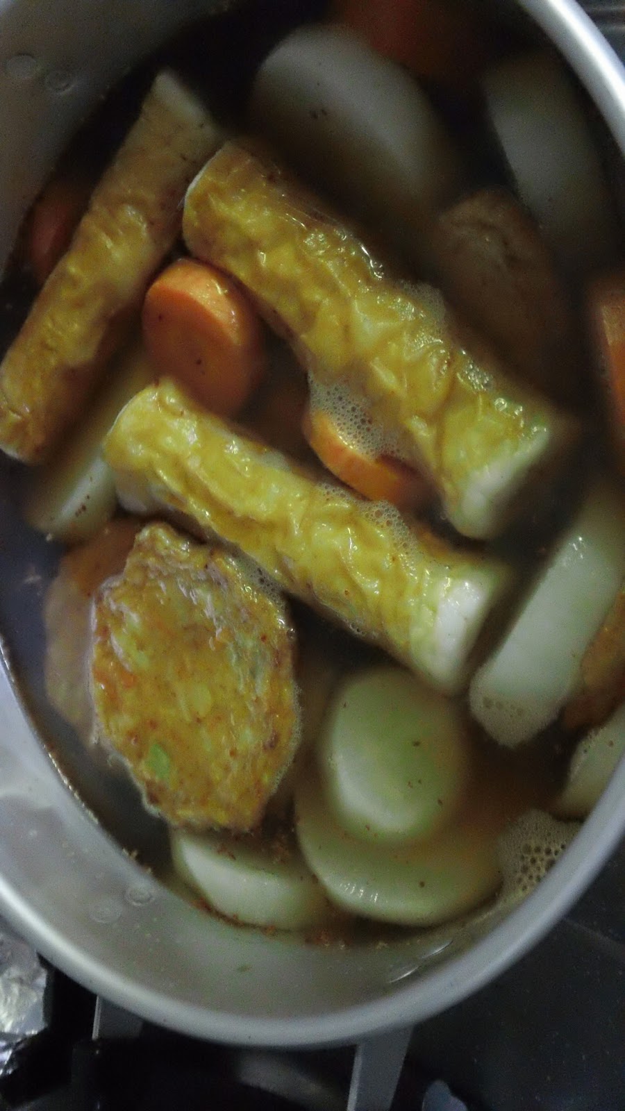 I next attempted to make oden, another traditional Japanese dish that is like a soup with a million fishcakes in it! It actually turned out pretty good, I'd bought an oden powder mix and followed instructions that I found on nhk.com, which has recipes in English! It wasn't perfect (not as good as Yuka's mom made it!) but it was good enough! I was pretty happy with this one because it's not easy to make if you aren't used to cooking Japanese food!